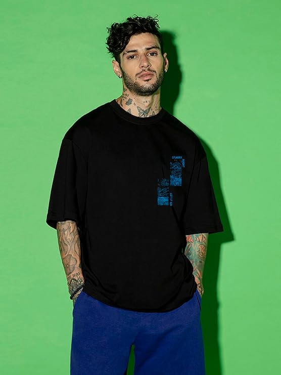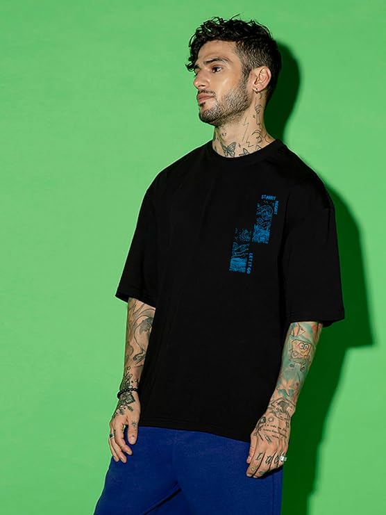 Men's 100% Cotton 220 GSM Graphic Print Oversized Fit Round Neck T-Shirt