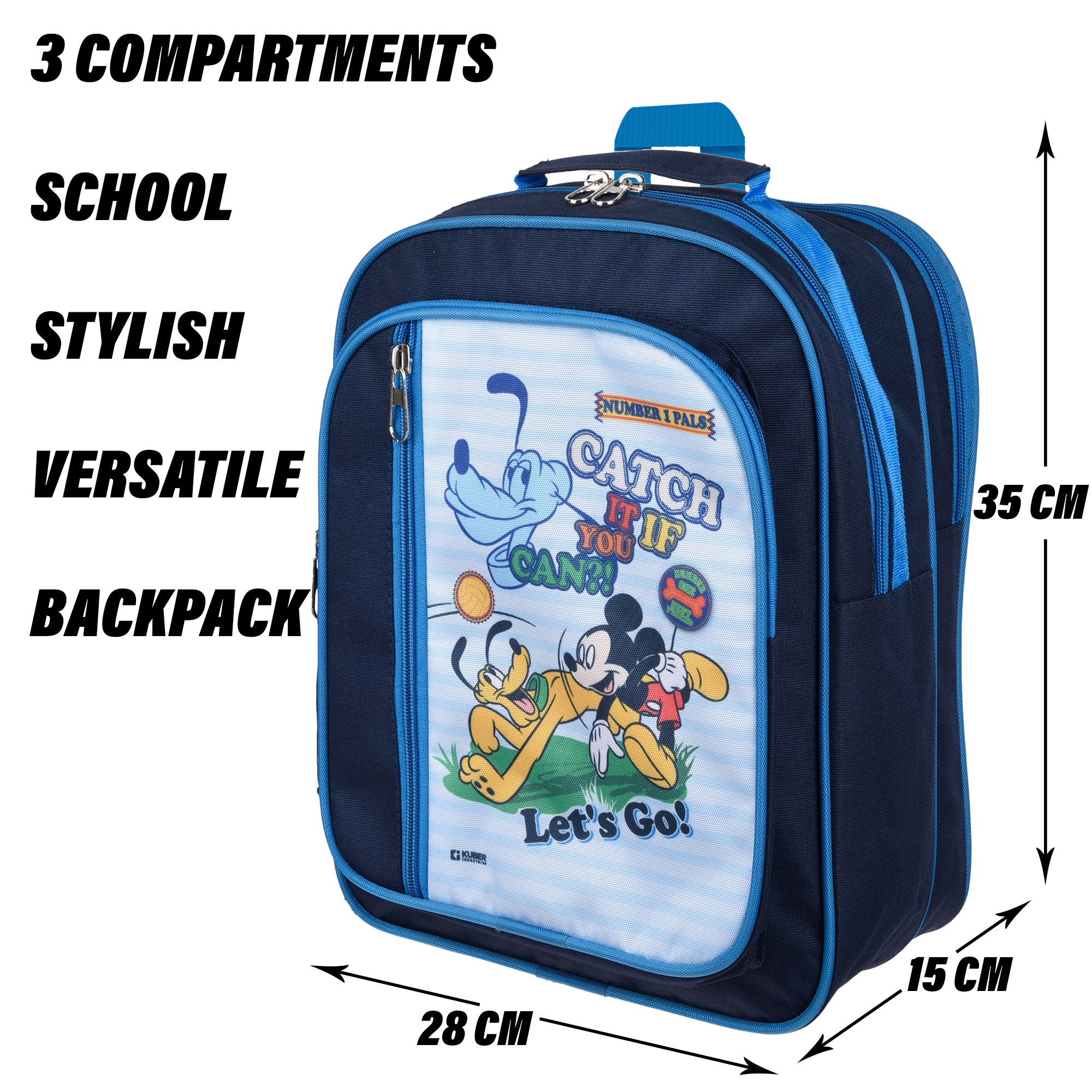 Disney Mickey Catch It School Bag | Kids School Bags | Student Bookbag | Spacious School Bag | School Bag for Girls & Boys | School Backpack for Kids | 4 Compartments School Bag | Navy Blu