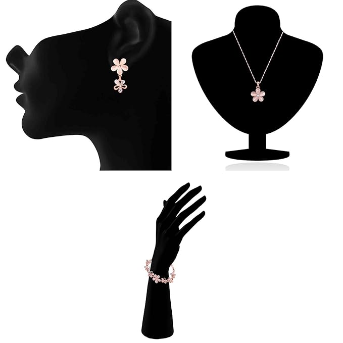 Girls/Women's Alloy and Cat's Eye Necklace Pendant, Earrings and Bracelet Set (Gold, Pink)