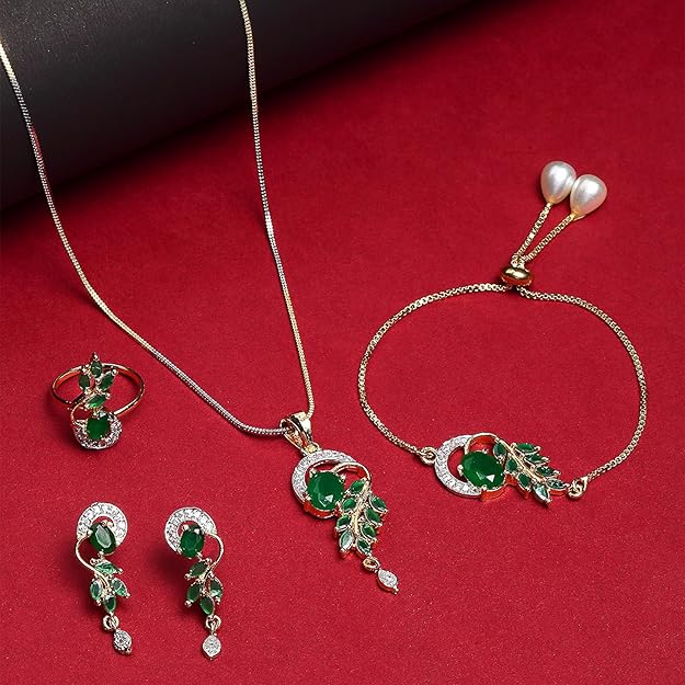 - What You Get:- Total 4 Items. 1 gorgeous pendant-chain, 1 Pair Of Matching & short Earrings, 1 graceful bracelet & 1 stylish ring