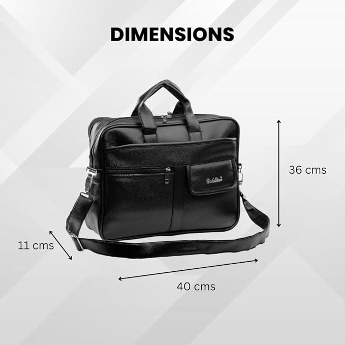Laptop Bag | Messenger Bag | Marketing Bag/Executive Bag | side Leather Bag | Leatherette Satchel with Removable Shoulder Strap and Zippered Pockets (40x36x11cm - Black)
