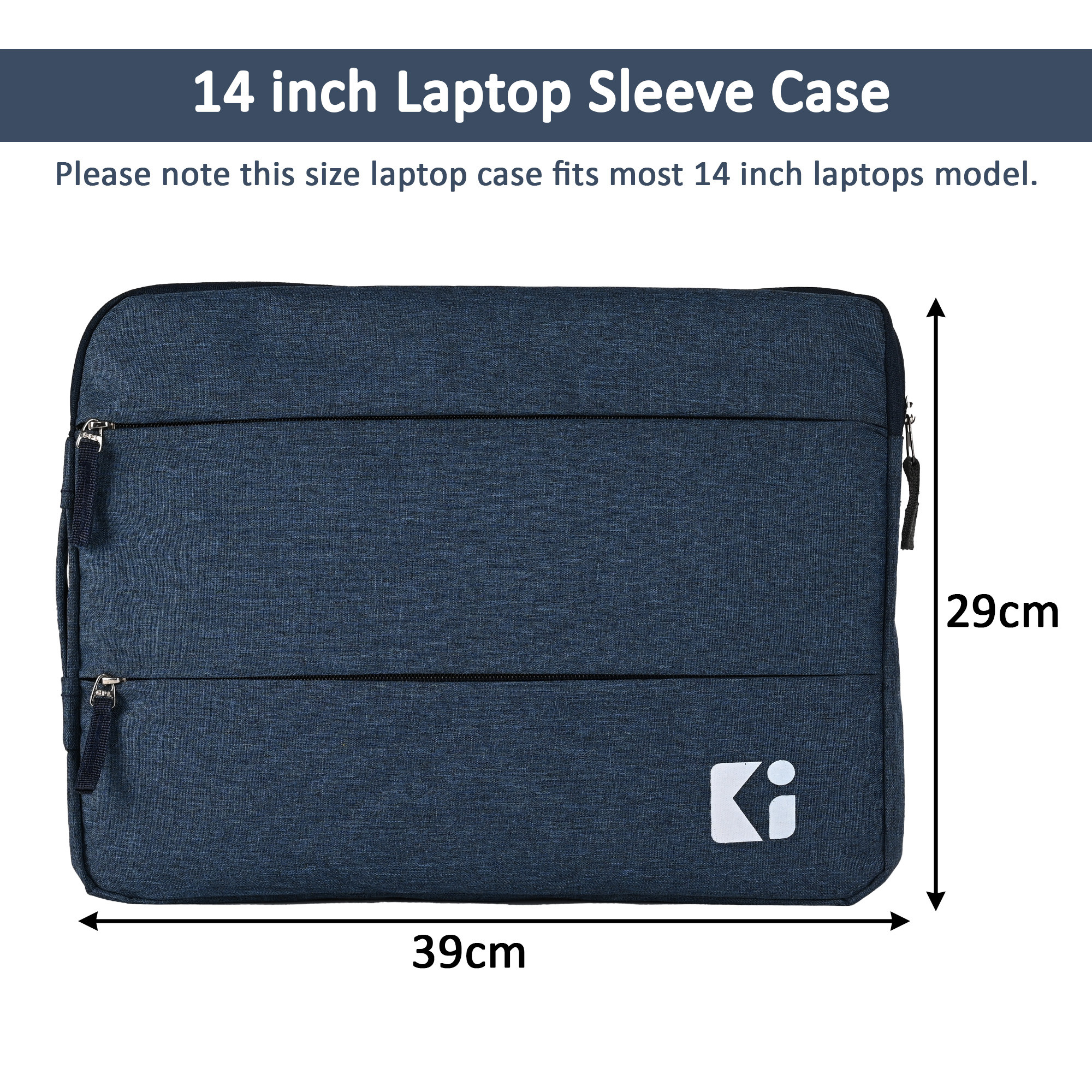 Waterproof Laptop Sleeve 14 Inch for Office and College Use with 3 Zipper Compartments | Notebooks/Gaming Laptop Cover & Protection Kit for Men & Women | Dark Blue
