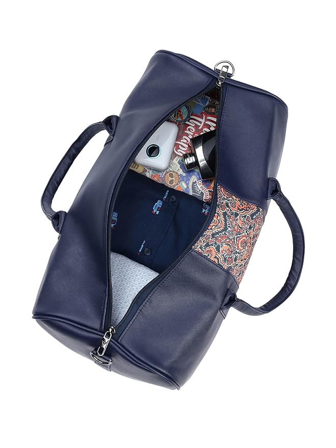 Leather Sustainable and Durable Cabin Duffle Bag 35L Travel Weekender Holiday and Gym Bag (Navy)
