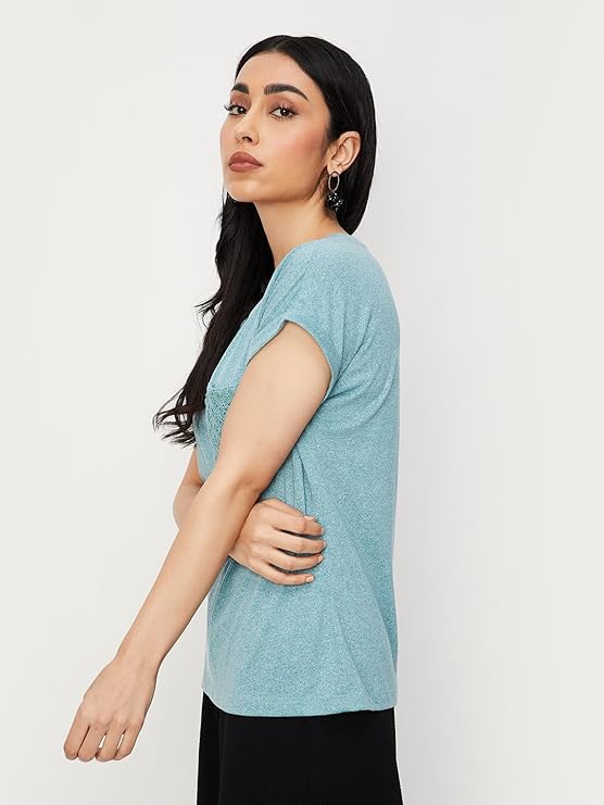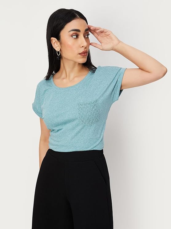 • Women Solid T-shirt with Crochet Pocket