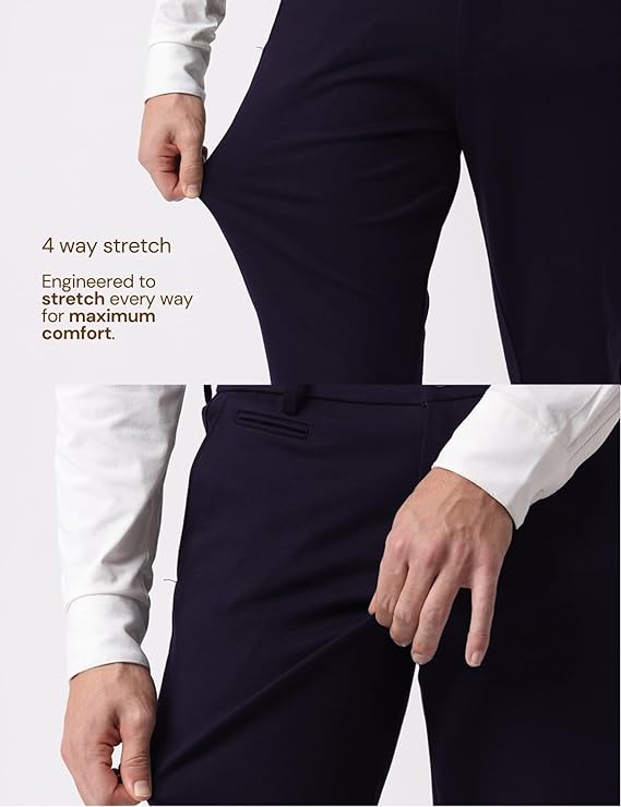 - Four-Way Stretch for Non-Stop Comfort: Made with four-way stretch, these trousers flex in every direction—up, down, left, and right—so you stay comfortable and unrestricted from 9-to-9.