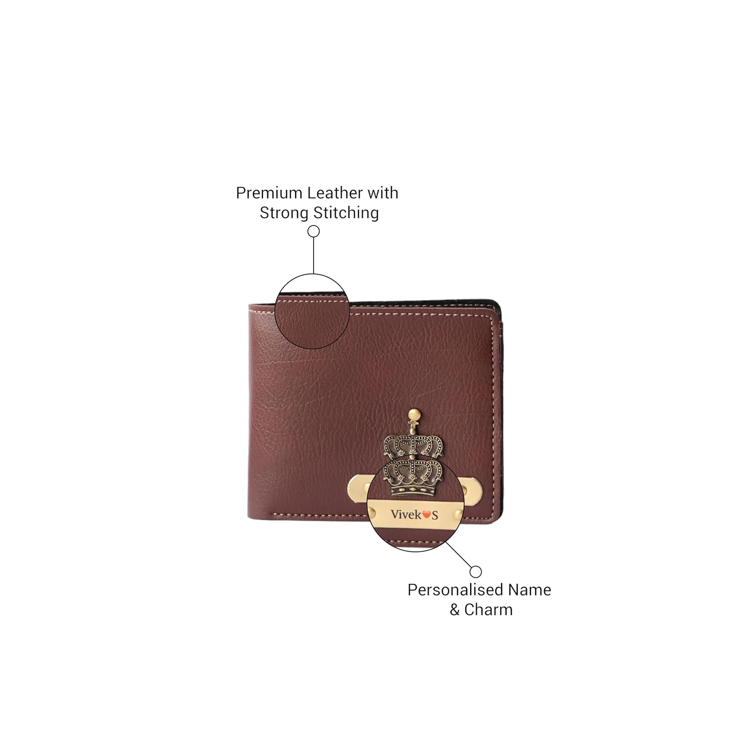 Men's Personalized Wallet I Customized Slim Stylish Leather Purse with Name & Charm I Unique Birthday Anniversary Gift for Men Boy Love Husband Employees Clients - (Brown)