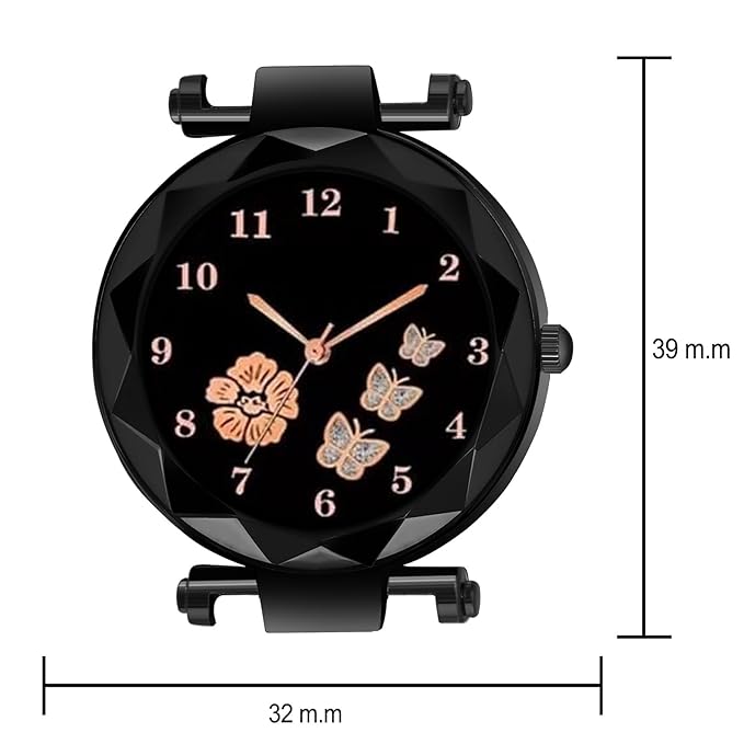 - SPECIAL WATCH :: Dial Color : Black | Strap Color : Black,Gold| Display Type : Analogue | Case Shape : Round | Wearables Suitable Occasion: Regular / Casual / Party | Look : Exclusive | Gender : ( Girl & Women ) | For Young People Of India | Design : Extra Ordinary designer piece | Analog Watch | girls watch