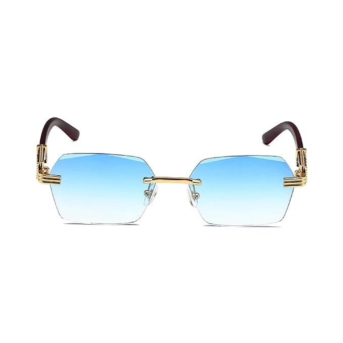 Rimless Rectangle Sunglasses | Unisex 90s Frameless Vintage Square Shades | UV Protection Fashion Eyewear for Men & Women Unisex Medium Size
