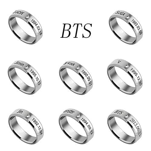 Ring for Men BTS Rings Stainless Steel Silver Ring Kpop BTS Bangtan Members Name & Dob Engraved Ring for Men and Boys.