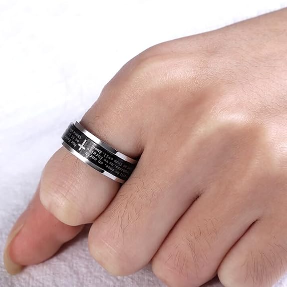 Rings for Men Band Ring Cross Black Tough Stainless Steel Bikers Ring for Boys and Men.