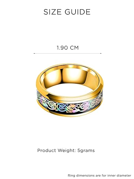 Rings for Men Dragon Celtic Inlay Polish Finish Titanium Steel Golden Ring for Men & Boys