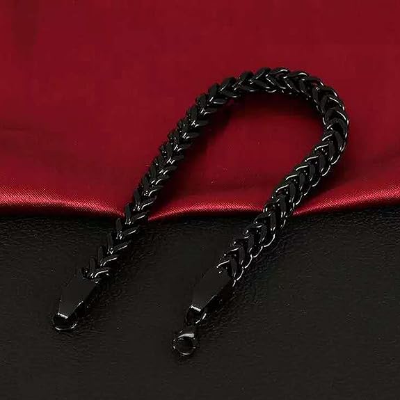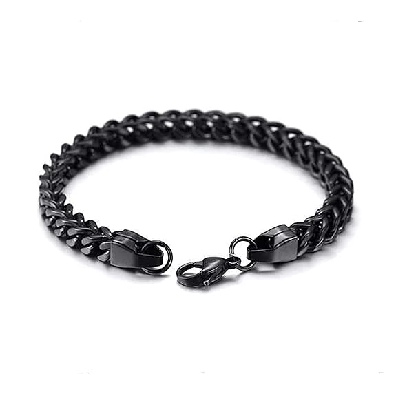 - Fashion Frill Stylish Bracelet for Men Black Stainless Steel Hand Chain Band Jewellery Accessories For Boys Gift for Husband & Boyfriend