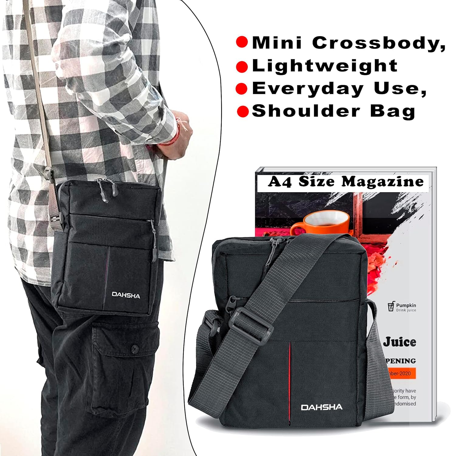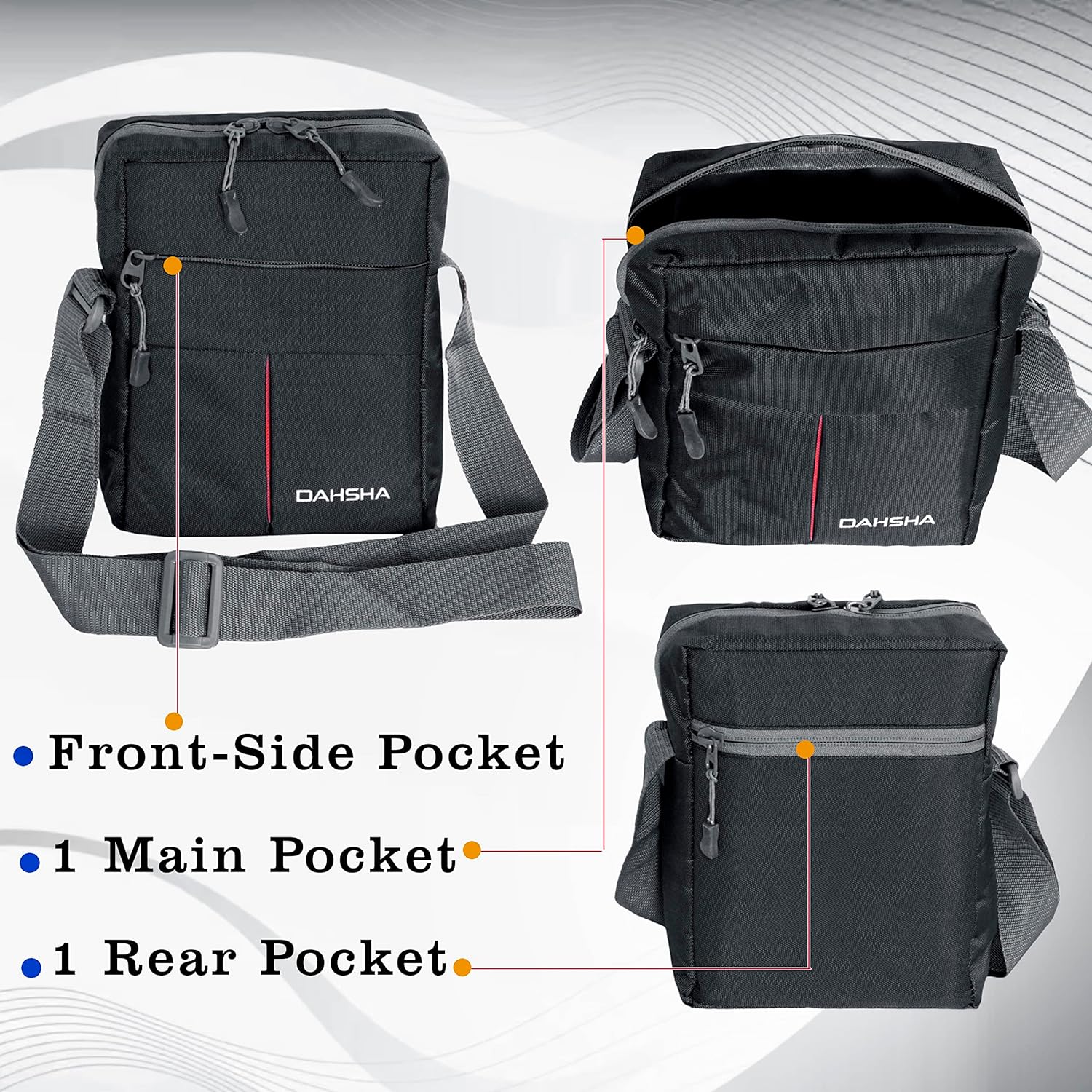- Multiple Padded pockets Crossbody bag: A total of 3 pockets (One front side Pocket, 1 Main Pocket & 1 Back Pocket