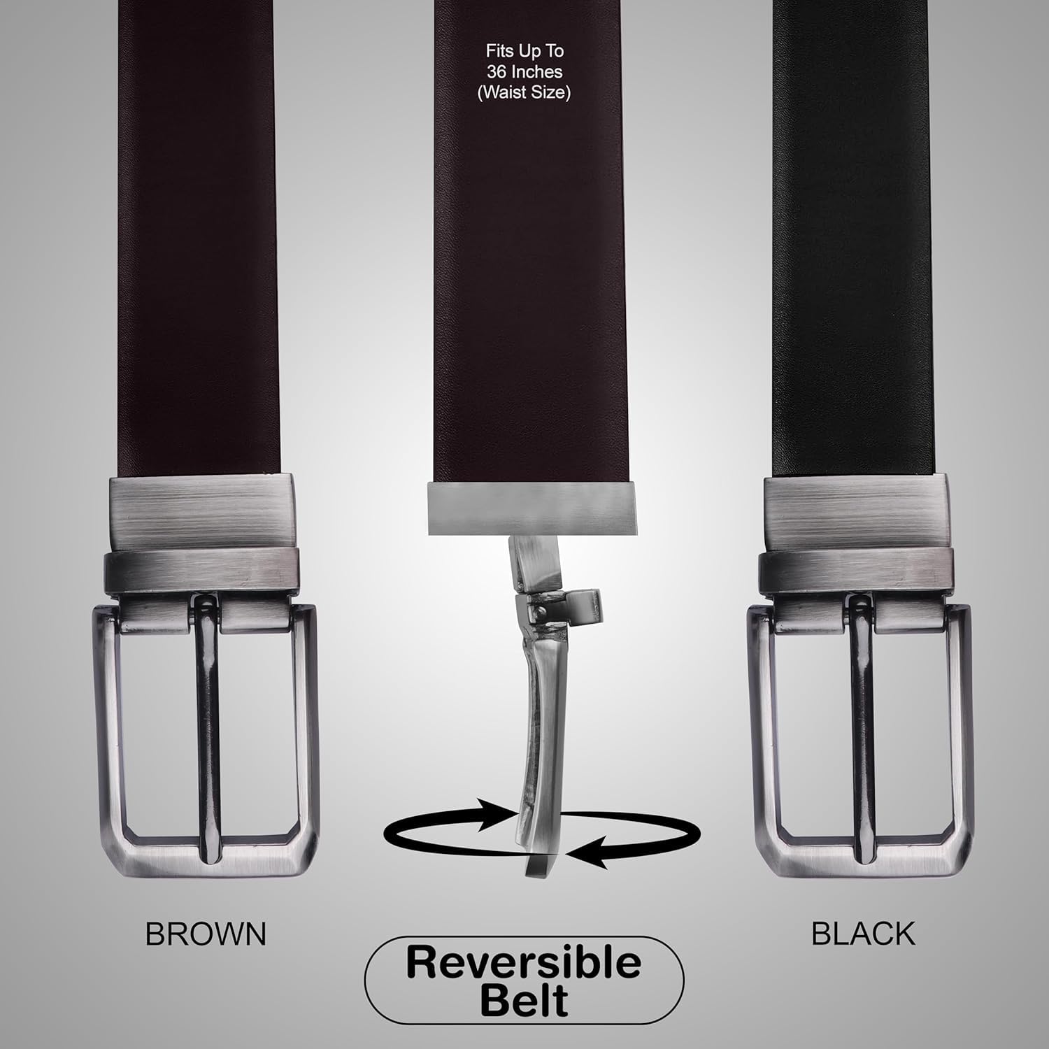 - Upgrade your outfit with our dual-color reversible belt. Made from high-quality faux leather, it effortlessly transitions from casual to formal wear. Versatile, stylish, and cruelty-free.