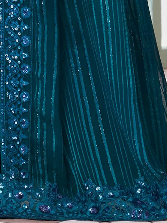 - Saree Color :- Teal blue || Blouse Color :- Teal blue