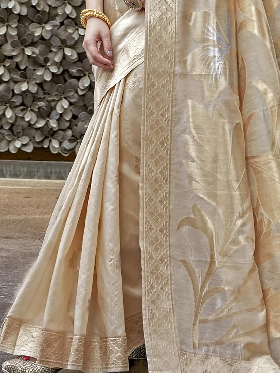 - Color :- Cream Sarees for women || Cream Unstitched Blouse