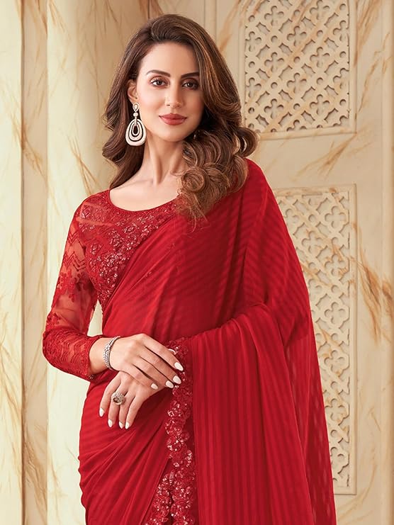 Women's Georgette Embroidery Saree With Unstitched Blouse Piece