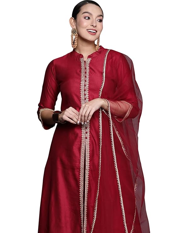 - Work: Sequins work with border to border double run thread with stylish look.