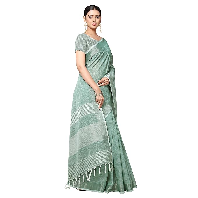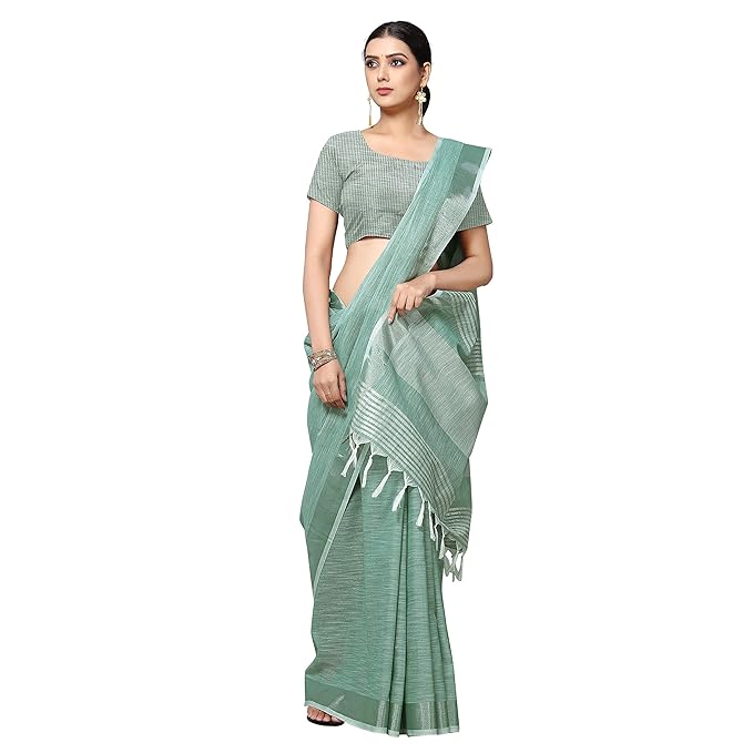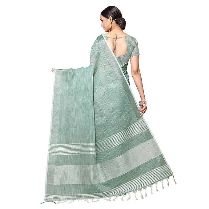 Women's Jacquard Linen Saree With Unstitched Blouse Piece (SILVERLINEN_NS)
