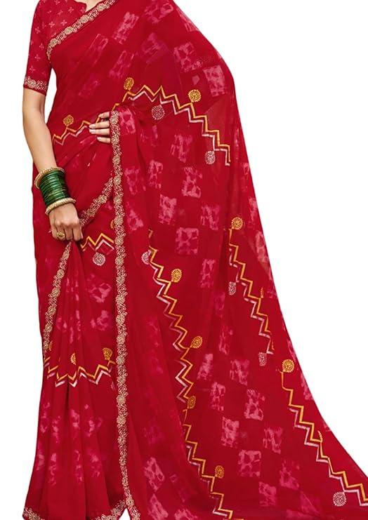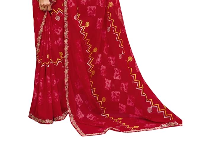 - Soft, Breathable Georgette Fabric: Comfortable and lightweight for long hours of wear | Vibrant Red Georgette Saree with Designer Prints: Perfect for weddings, parties, and festive occasions