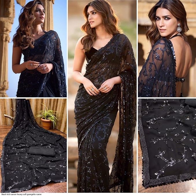 Women's Sequence Work Georgette Saree With Blouse Piece (Kriti Sanon Sequence)