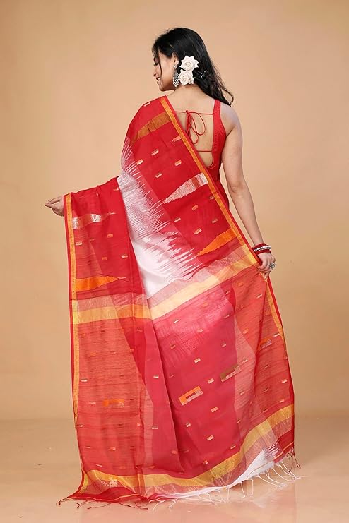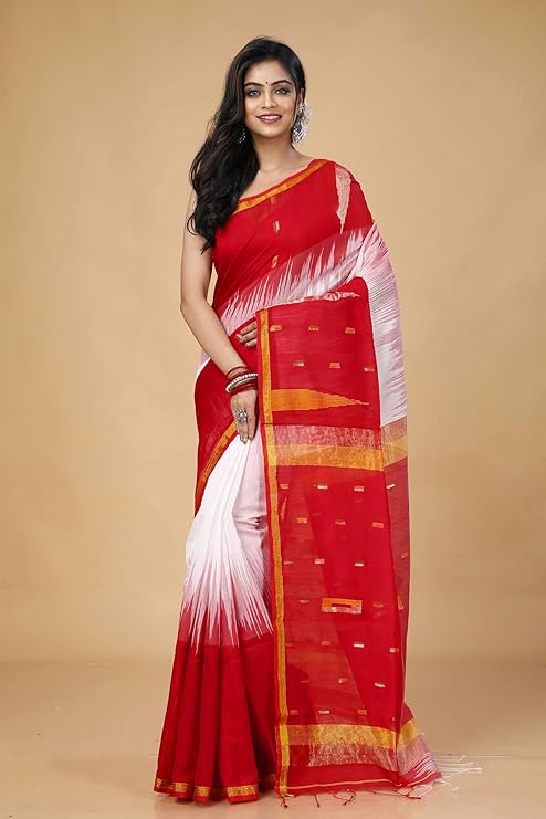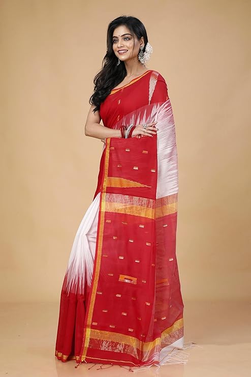 • Weave Type: Handloom; Material: Cotton,Silk; Color: Red White