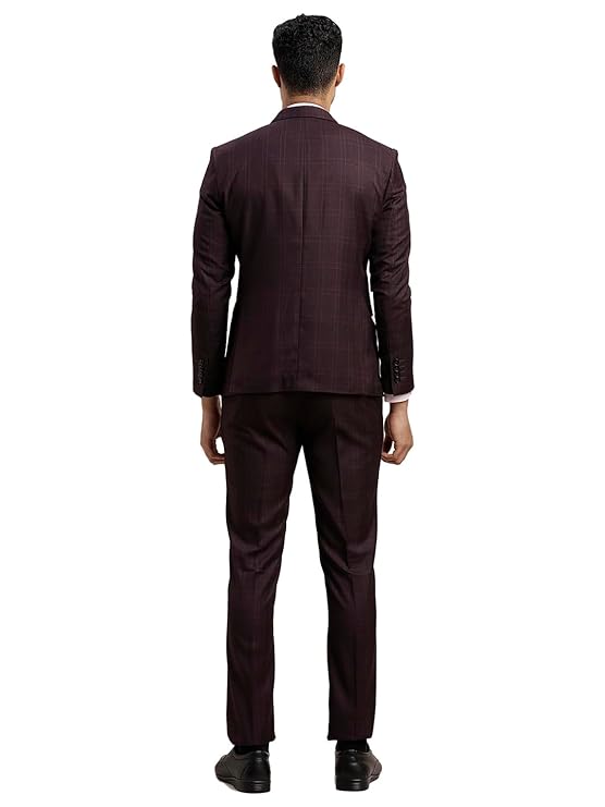Checkered Full Sleeve Two Piece Brown Formal Suit