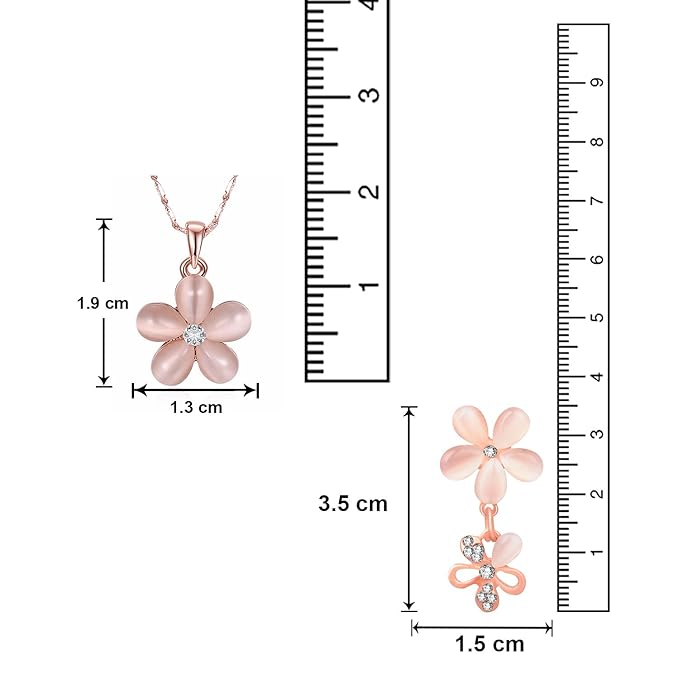 Girls/Women's Alloy and Cat's Eye Necklace Pendant, Earrings and Bracelet Set (Gold, Pink)