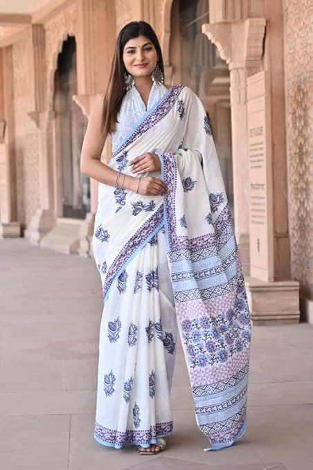 - FABRIC : Mulmul Cotton Saree with Cotton Mulmul fabric Blouse pc || Work: Printed ,Block print,Ajrak print, Traditional Ethnic Look.