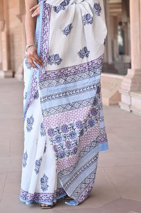 Handicrafts Hand Block Print Mulmul Cotton Sarees for Women | Cotton Mulmul Sarees for Women Attach Blouse Piece 1445