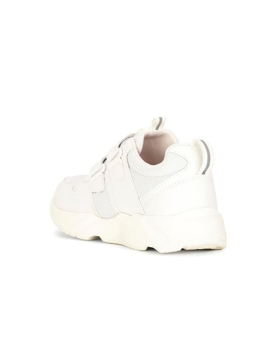 - A pair of round toe white sneakers shoes, has regular styling,