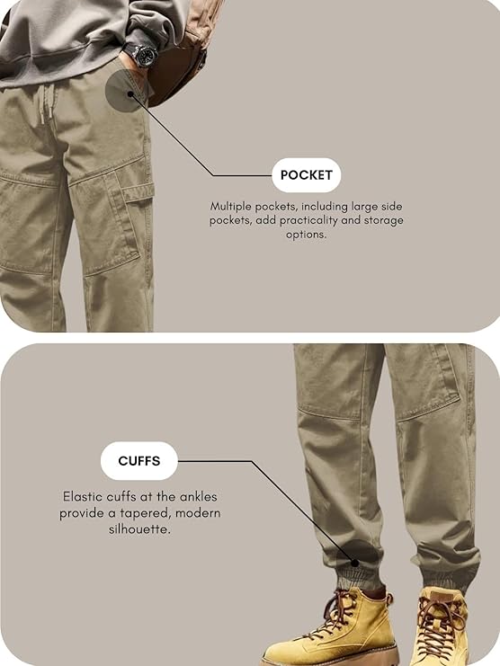 - Trendy & Versatile Fit – A modern cargo for men cotton style with an adjustable elastic hem and a relaxed fit, providing the perfect blend of fashion and functionality.