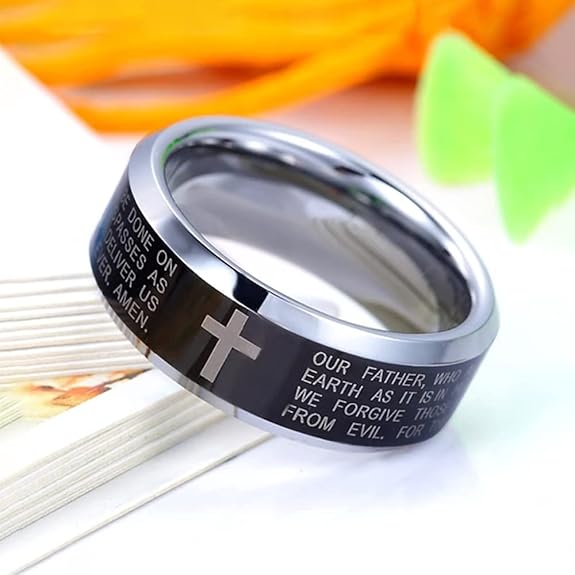 Rings for Men Band Ring Cross Black Tough Stainless Steel Bikers Ring for Boys and Men.