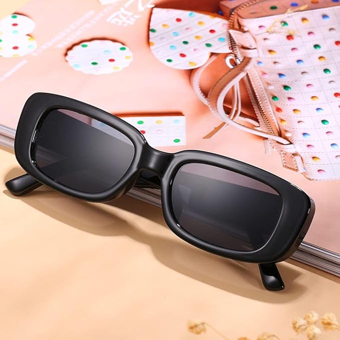 - VINTAGE DESIGN : Not only is the simple and compact design makes thick frame looks very delicately, but also the rectangle shape frame makes the overall look of the sunglasses more retro.