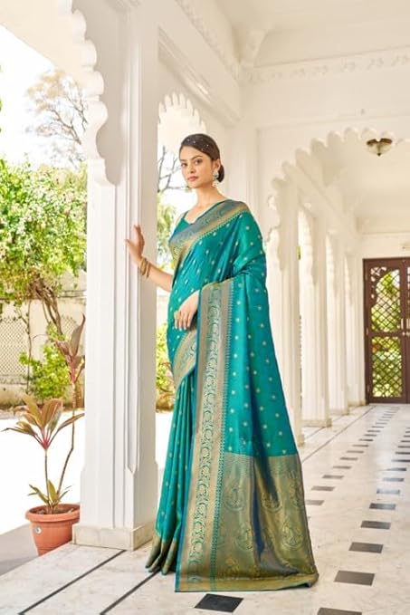 Women's kanjivaram banarasi silk saree for festival Wedding silk with rich pallu Design sarees for women with Unstitched blouse piece