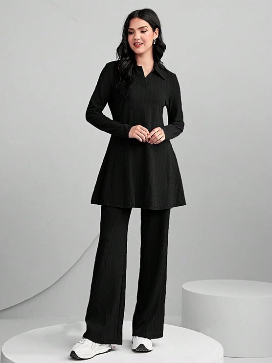 - This set includes: 1 Top with 1 Pant | Work Type : Solid | Neck Style:- Collar Neck